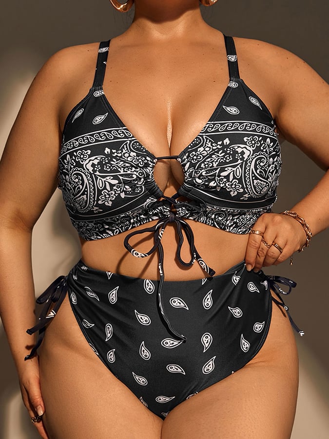 Adjustable Lace Up High Waist Triangle Split Bikini Swimwear