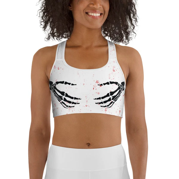 This gorgeous sports bra is made from moisture-wicking material that stays dry during low and medium intensity workouts. The bra has support material in the shoulder straps, double layer front, and a wide elastic band to ensure constant support.