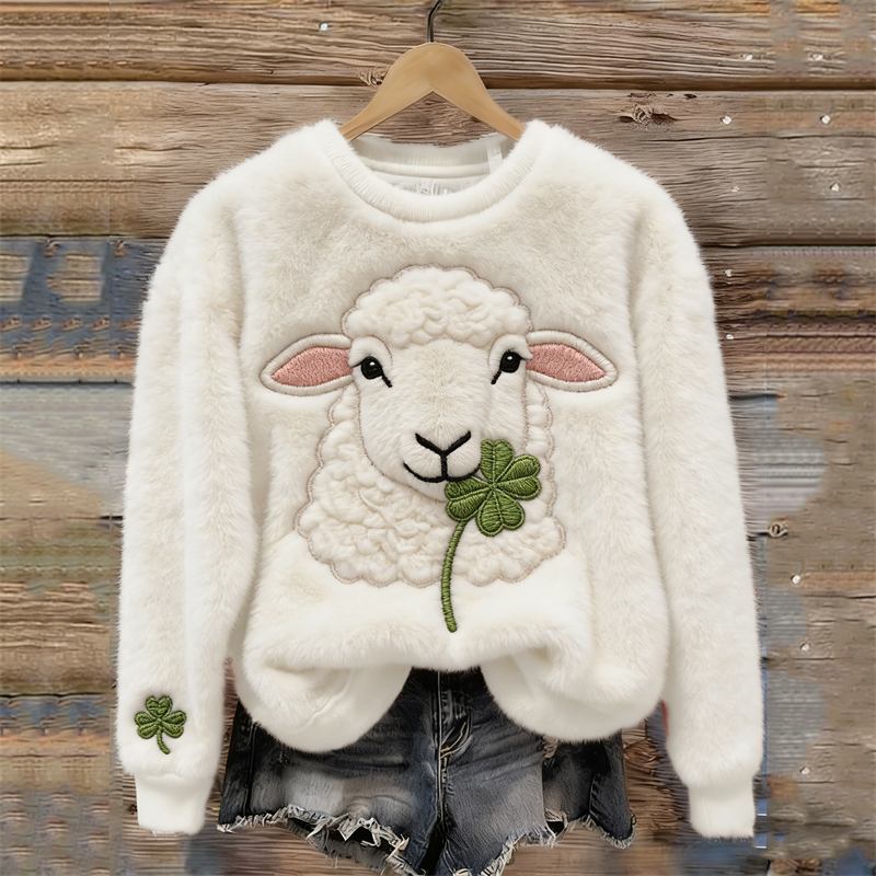 Fuzzy Sheep With Shamrock Cozy Plush Sweatshirt