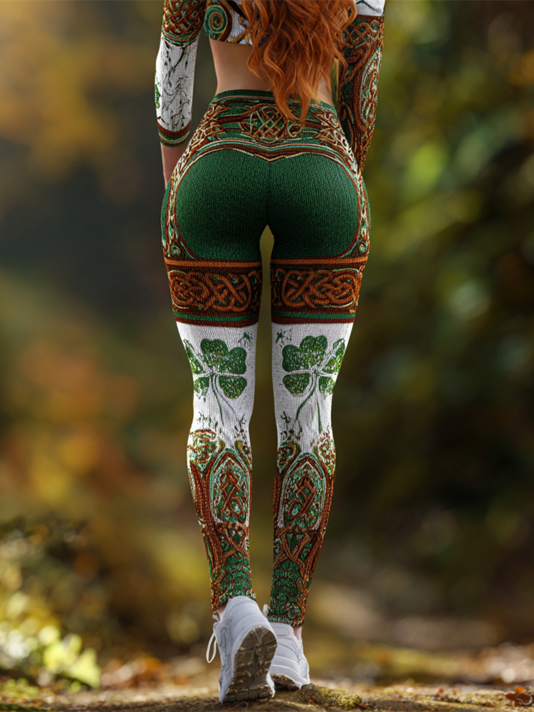Irish Shamrock & Celtic Knot Pattern Women's Knit Leggings