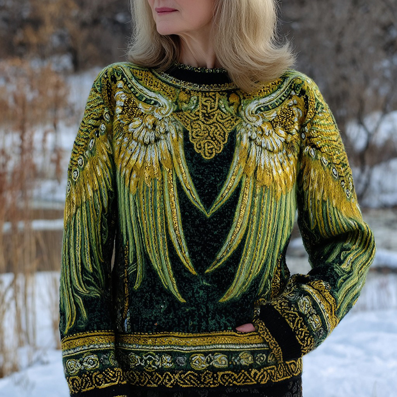 St. Patrick's Day And Celtic Wings Pattern Women's Crew Neck Sweater