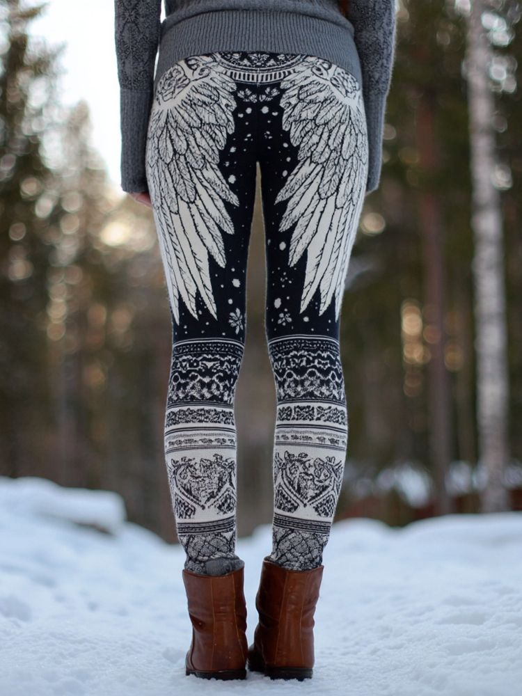 Vintage Viking Inspired Wings Pattern Comfy Knit Leggings
