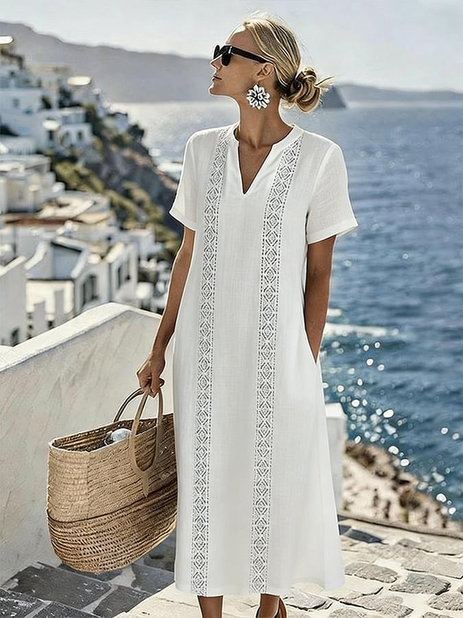 Women's Casual V-neck Short-sleeved Vacation Dress