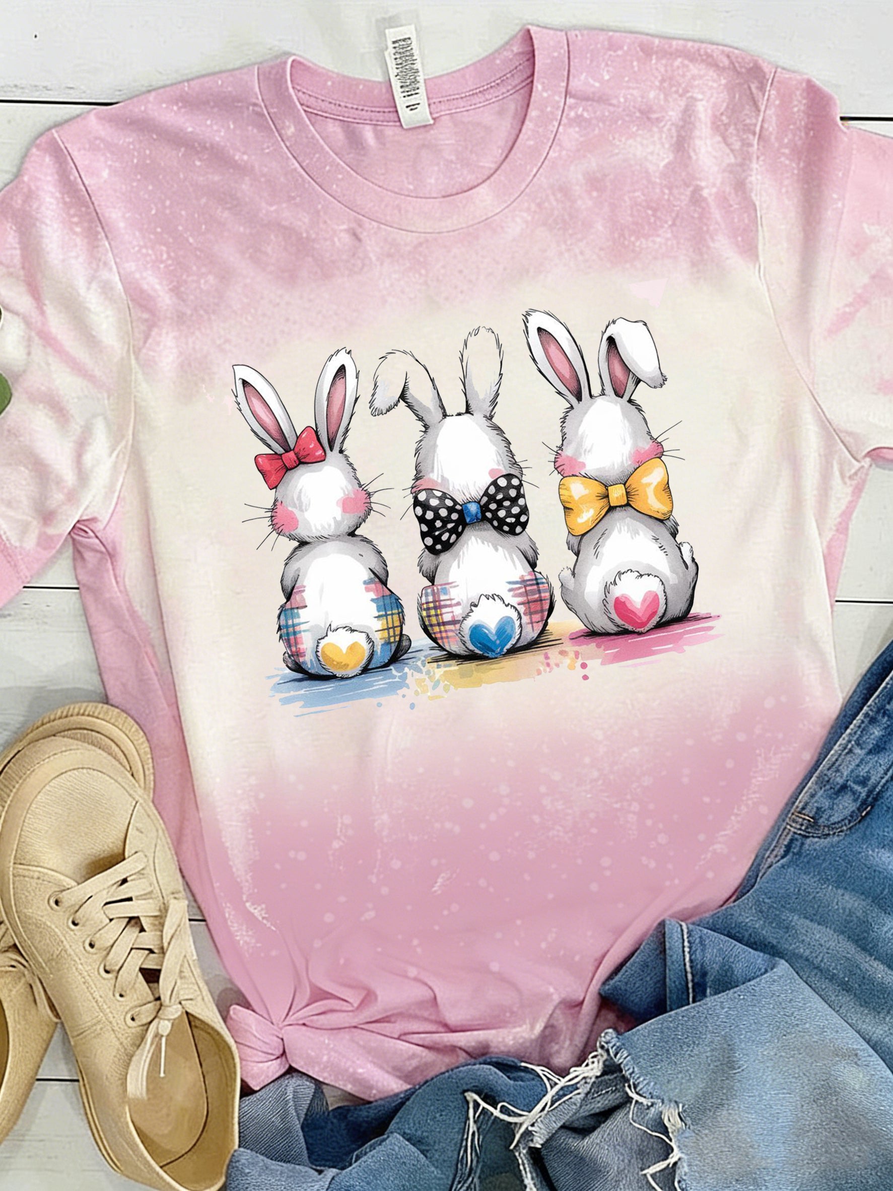 Women's Easter Bunny Animal Printed Vintage Fashion Loose Short Sleeve T-Shirt