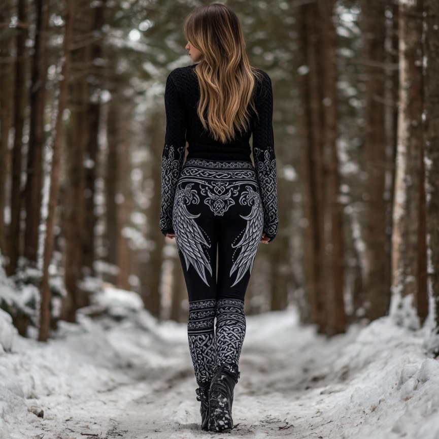 Women's Retro Viking Angel Wings Art Warm Leggings