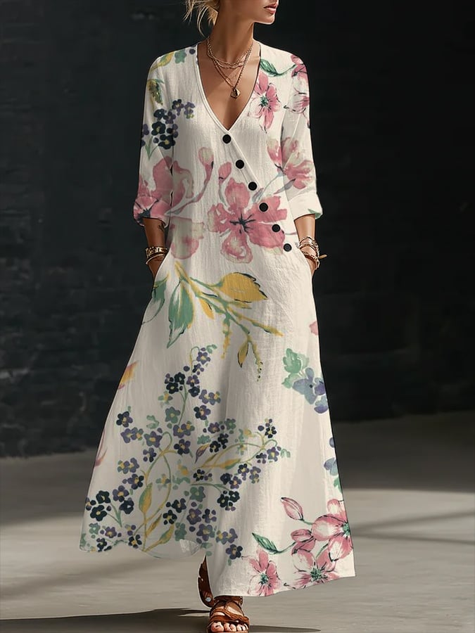 Women's Vintage Floral Art Print Dress